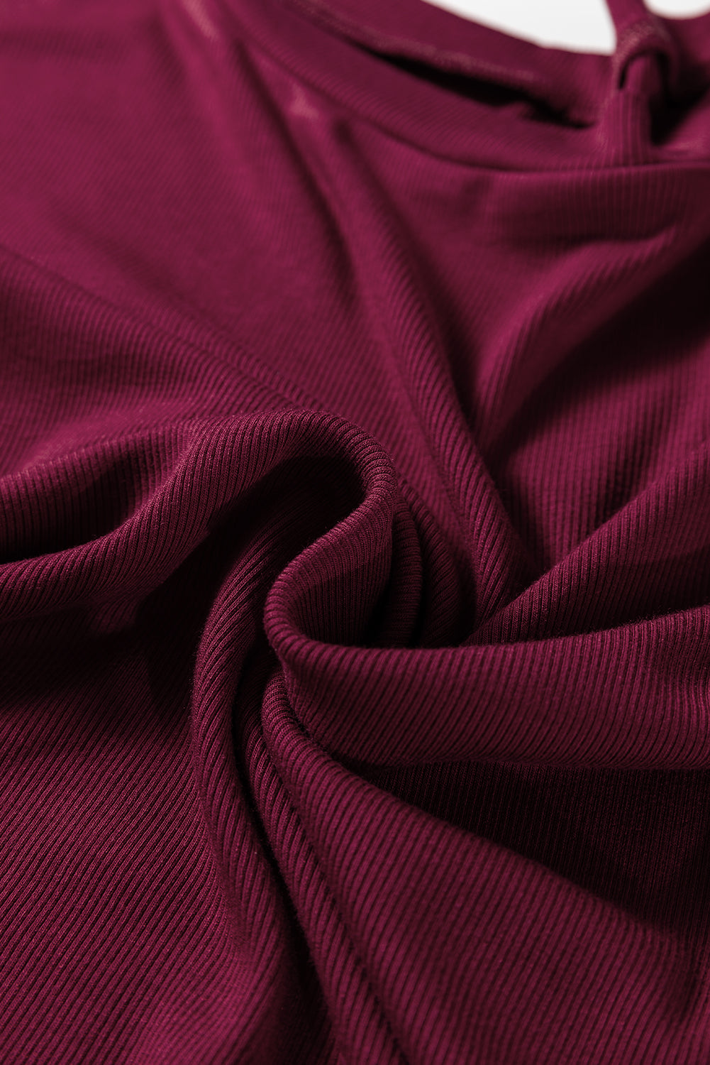 The ruffled cuffs adds feminine detail to this ribbed top.
